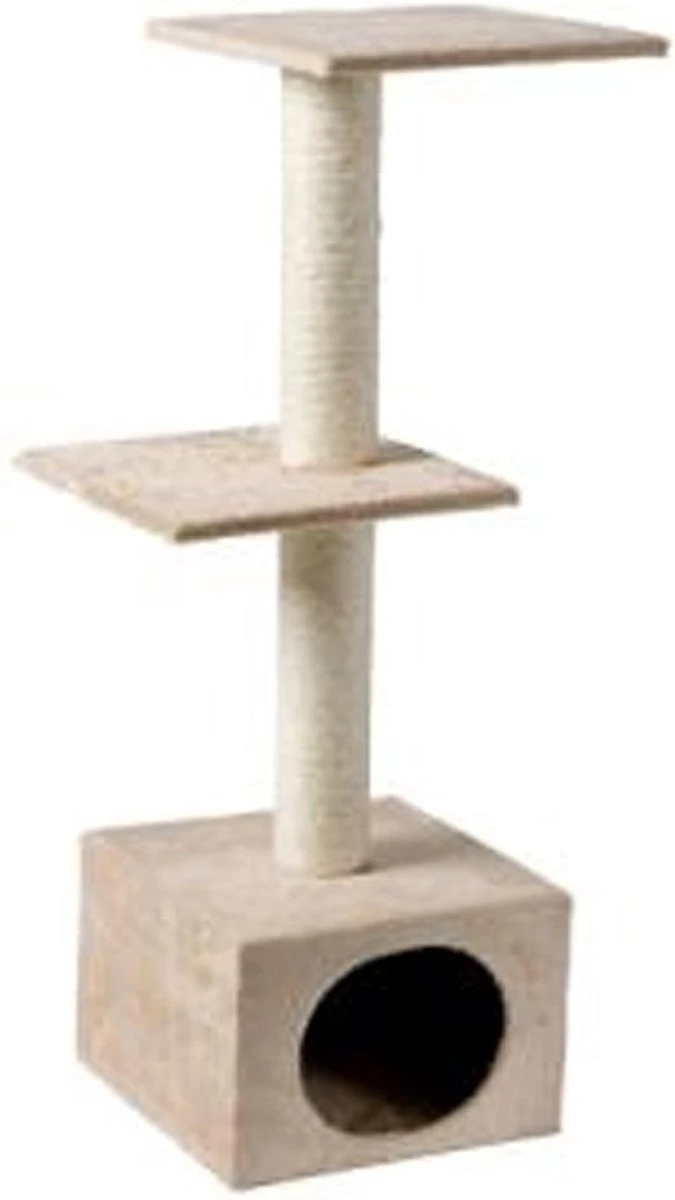 Deze compacte krabpaal kun je overal in huis kwijt! De krabpaal is voorzien van 2 plateaus die zijn bedekt met heerlijk zacht pluche. Het bovenste plateau is super geschikt om lekker op te kunnen liggen. Onderaan de krabpaal beschikt hij over een kattenhuis waar lekker kan worden geslapen.