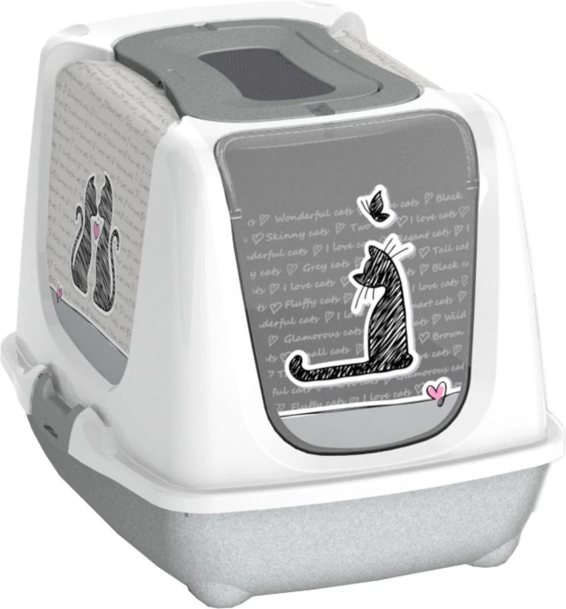 Kattenbak Trendy 50 Cats in Love is een kattenbak met een leuke print. Heeft een vervangbare koolfilter die de nare geurtjes tegengaat. Ook zit er aan de bovenzijde een handvat om de kattenbak eenvoudig te kunnen verplaatsen. De kap is er gemakkelijk af te halen middels een kliksysteem.