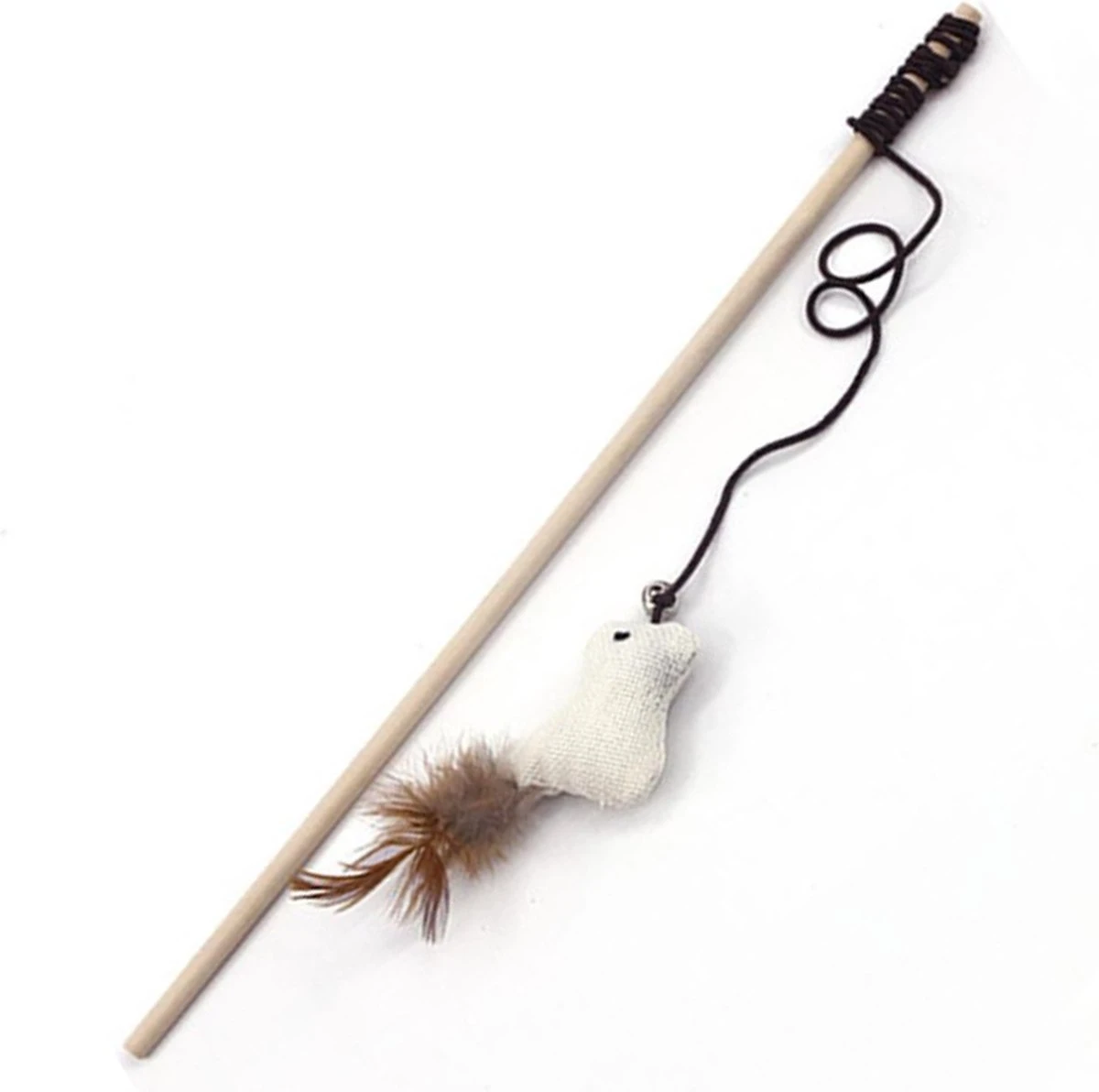 Deze speelhengel brengt het jachtinstict van je kat naar boven en zorgt dat hij zijn energie kwijt kan. Aan de houten hengel zit een elastisch koord met belletje en een vogel met veren. Maak je kat blij met dit stevige speeltje.