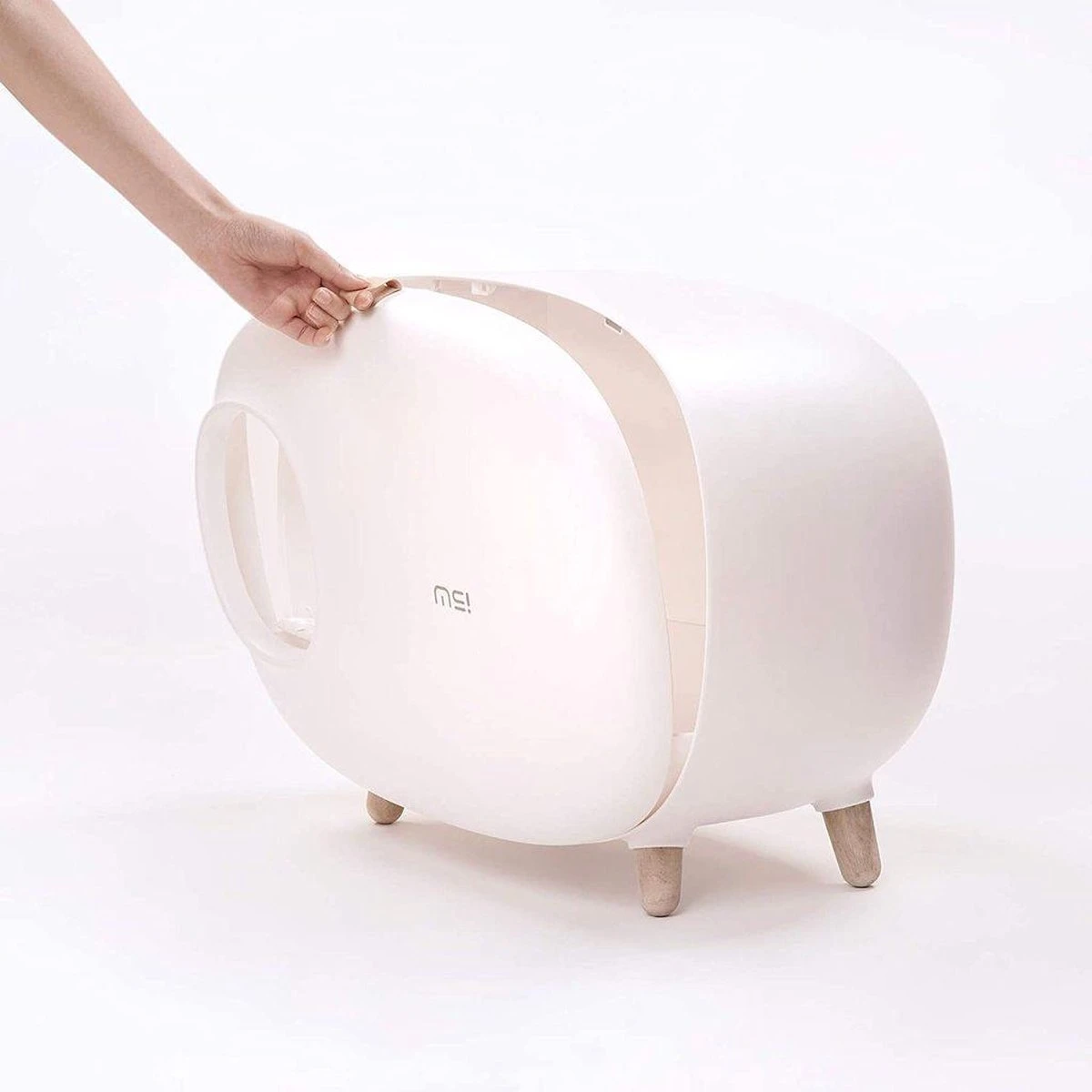 De handige voorzijde kun je openklappen waardoor je vrij de ruimte hebt om de binnenbak uit te nemen, te legen en schoon te maken. Doordat je zo gemakkelijk bij de bak kunt, wordt het tussentijds zeven van het kattengrit geen gedoe meer. Zo krijgt jouw kattenvriend een schonere bak en jij een schoner huis.