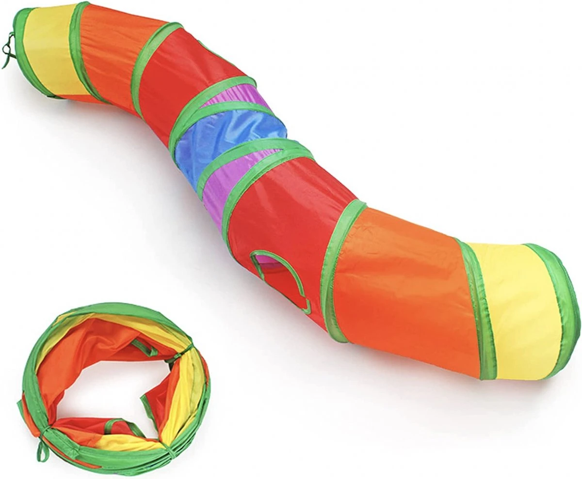 Kitten Approved: Deze Kitty Tunnel heeft onze twee katten eindeloze uren entertainment geboden. Het heeft openingen aan beide uiteinden en twee kleinere openingen aan de zijkanten. De katten houden ervan om elkaar te jagen, hun speelgoed mee te nemen en in de tunnel te verbergen, de tunnel als persoonlijke verstopplaats te gebruiken en zelfs in de tunnel een dutje te doen.