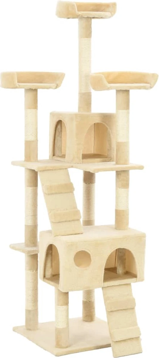 Je kattenvriendjes kunnen hun klauwen scherper maken met de krabpalen die omwikkeld zijn in sisaltouw, dit zorgt voor een gezonde uitlaatklep voor de krablust van je kat. Ze zullen het ook heerlijk vinden om achter elkaar aan te rennen terwijl ze van en op dit leuke speelcentrum springen. Wanneer ze genoeg gespeeld hebben kunnen je kleine vriendjes uitrusten op de bovenste platformen, waar ze een beter uitzicht hebben. Ze kunnen zich ook verschuilen in de knusse huisjes om een dutje te doen. Met al deze leuke functies wordt dit kattenspeelhuis de favoriete hangplek van je harige vriendjes! De kattenkrabpaal is eenvoudig te monteren.